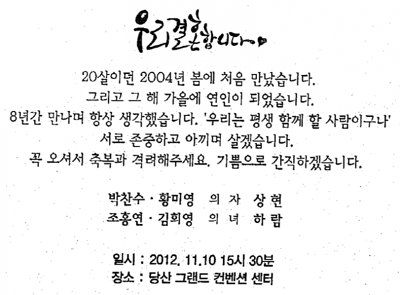 결혼 알림 - 이광화 장녀, 12월22일(토)3시, 라마다서울호텔(분당선 선정릉역1번출구 도보1분)02-6202-2000