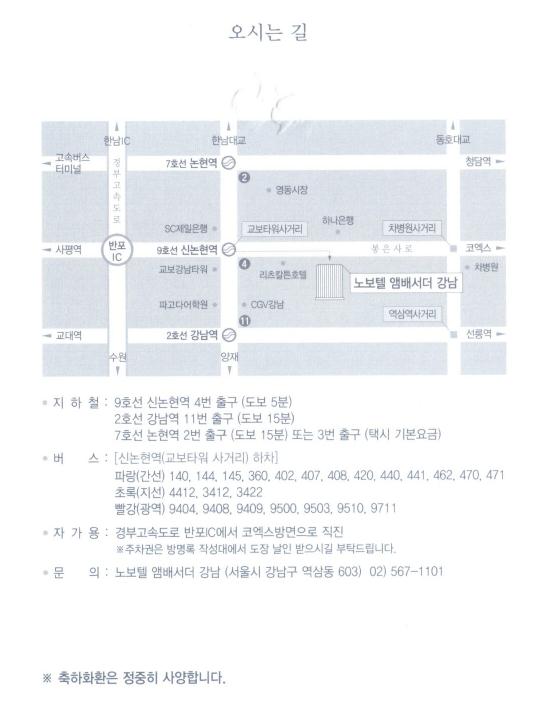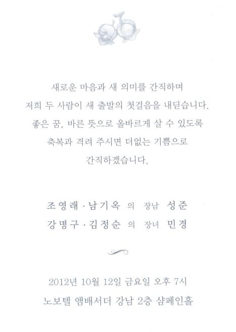 결혼 알림 - 강명구 장녀, 10월12일(금)7시, 노보텔앰배서더 강남