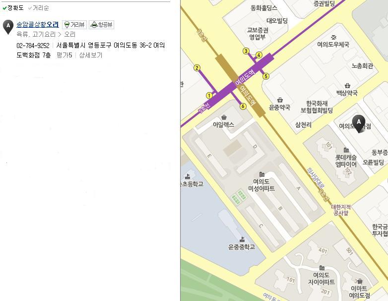 5호선 여의도역 5번출구 부근. 여의도 백화점 7층