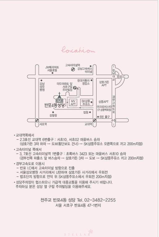 청첩 - 정열 장녀 결혼, 11월 13일(토) 12시, 천주교 반포4동 성당 본당(약도참조)