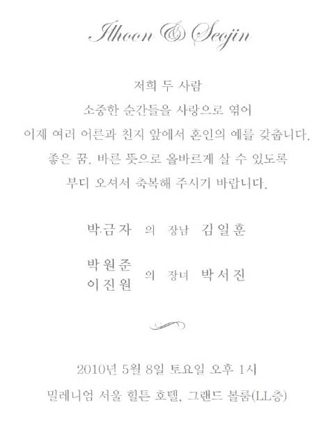 청첩 - 박원준 장녀 결혼, 5월8일(토) 1시, 밀레니엄 서울 힐튼호텔 그랜드볼룸(서울역8번출구 700m)