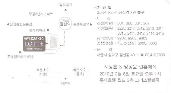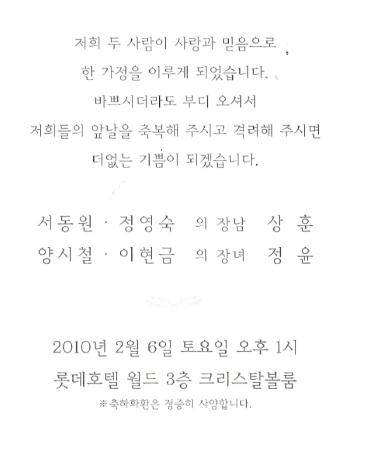 청첩 - 서동원 장남 결혼, 2월6일(토) 1시, 롯데호텔 잠실월드3층 크리스탈볼룸