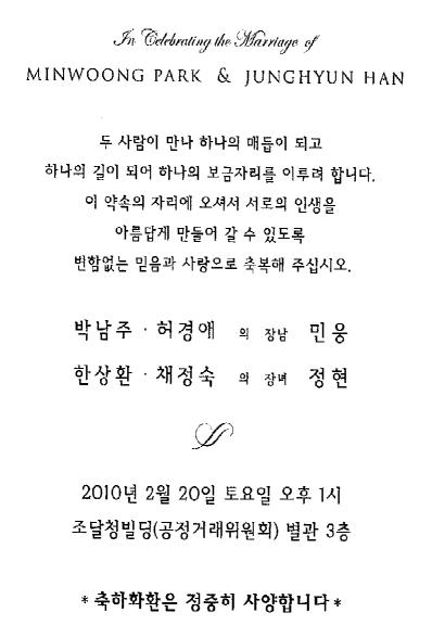 청첩 - 박남주 장남 결혼. 2월20일(토)1시, 조달청빌딩 별관3층(강남성모병원 앞)