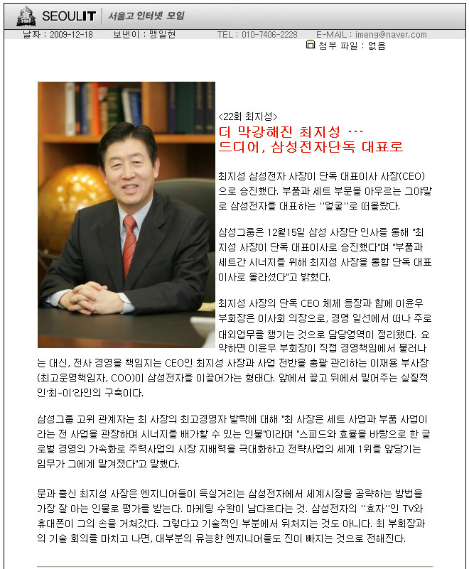 ♠축하(祝賀)드립니다 → 최지성, 삼성전자 대표이사 총괄 CEO