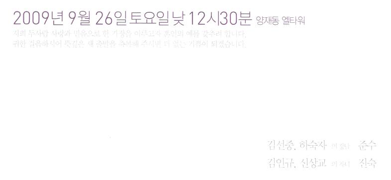 청첩 - 김선중 장남 결혼, 9월26일(토) 12시30분, 엘타워(양재동 소재)