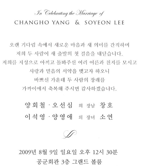 청첩 - 이석영장녀 결혼, 8월9일(일) 12시30분, 공군회관 3층 그랜드볼룸