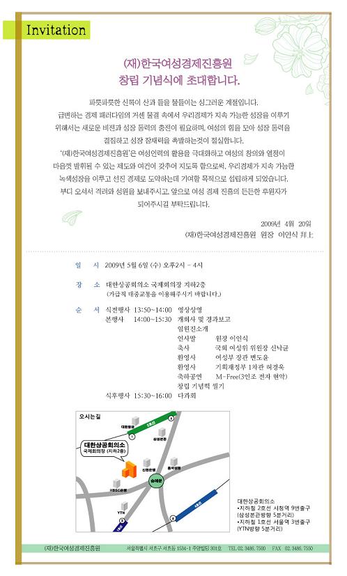 초대 - 이인식, (재)한국여성경제진흥원 창립 기념식, 5월6일(수)2시, 대한상공회의소 국제회의장