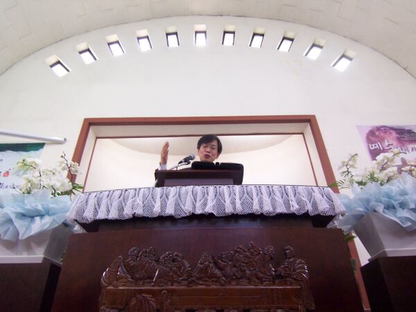 예배 중에 마지막으로 예기치 않게 구인기가 도착해 김 목사가 감격해 하였다.