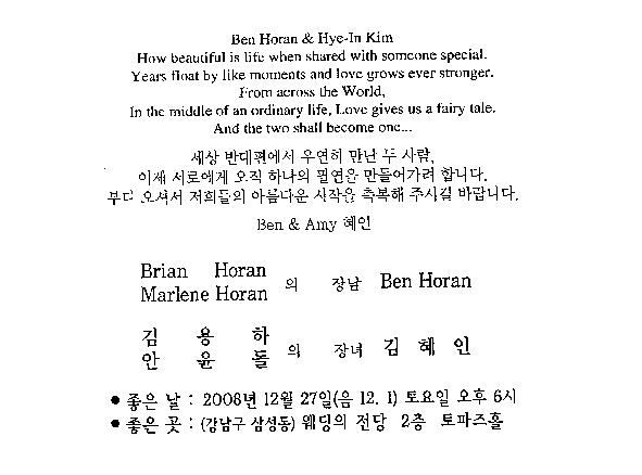 청첩-김태극 장남 결혼,2009년1월17일 12시, 청담동 성당