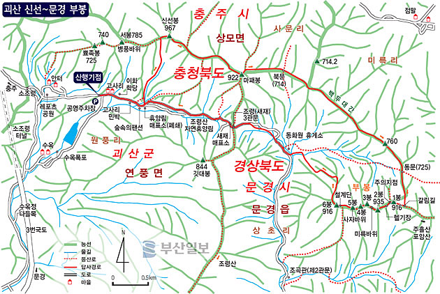 고사리~조령관~동화원부봉.동문갈림길~부봉6봉~부봉6.5봉사이안부~조곡관쪽2.5km산길~