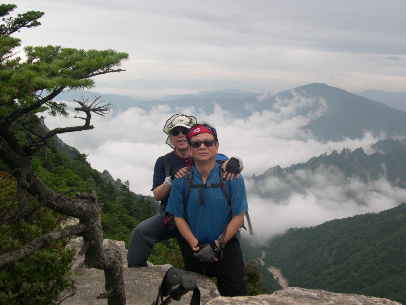 사진2: 남설악에 피는 운해를 바라보는 홍~기(기창)와 짱~가(창학) ... 서북주능eQ바위에서!