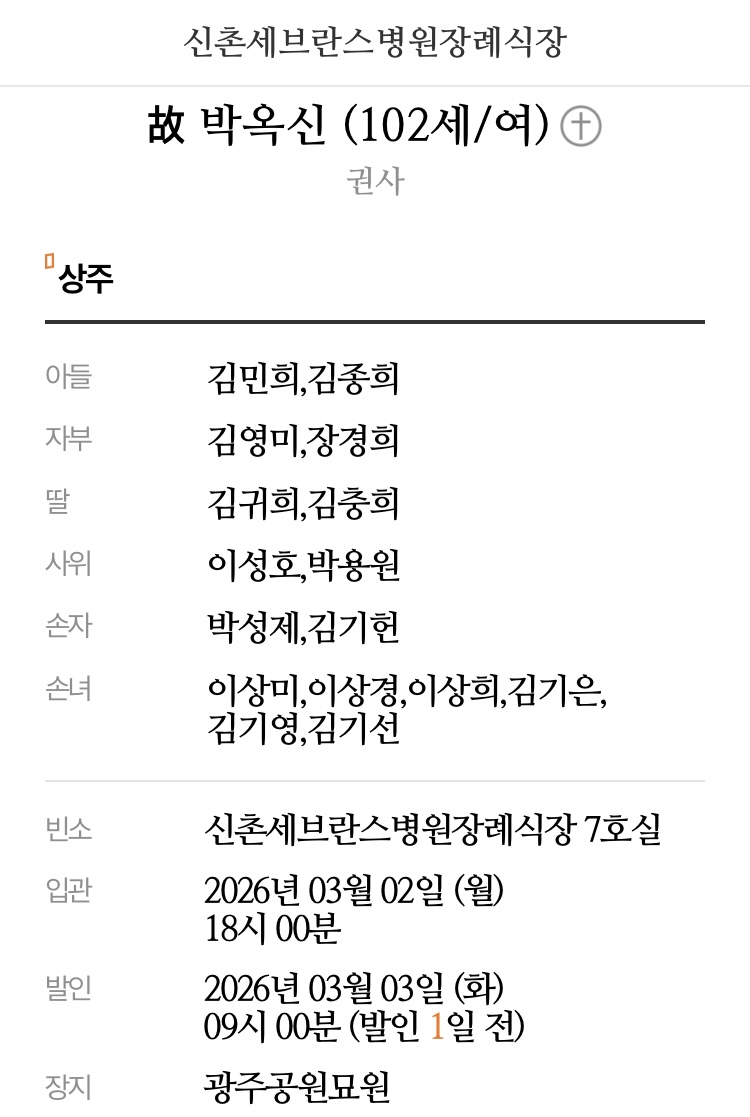 - 빈소: 신촌세브란스병원장례식장 7호실