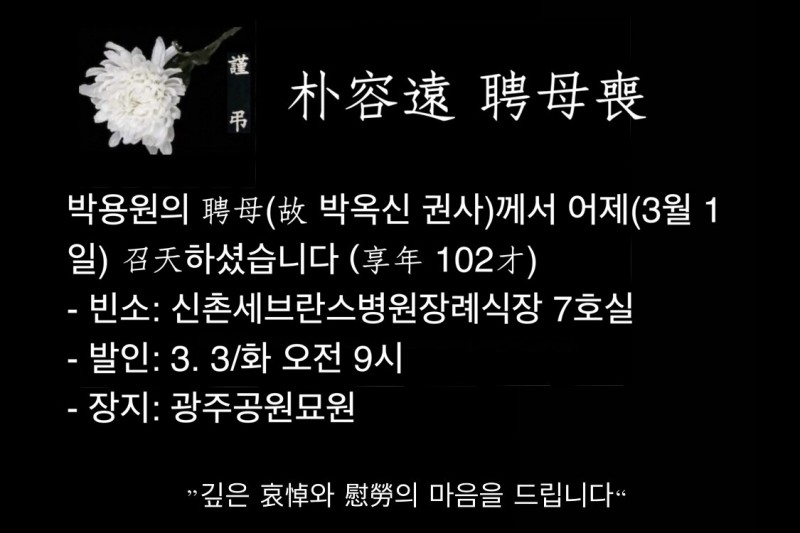 * 동기회에서는 오늘(3.2/월) 오후5시에 조문할 예정입니다.