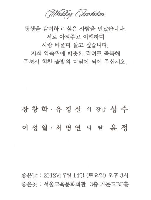 결혼 알림 - 장창학 장남, 7월14일(토) 3시, 서울 교육문화회관 3층,양재시민의숲역 5번출구 도보7분
